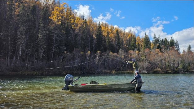 The fishing happened over four beats: the upper Ur, the lower Ur, the upper Eg, and the lower Eg below the confluence with the Ur. The entire camp was strategically situated on the Ur River at the junction of the upper and lower beats. The word “beat” failed to describe the vastness of these segments, as each contained 20-40 river miles. Individually, a single beat could have sustained the entire group of eight anglers for the week. There was one boat and guide with two anglers per beat, and all anglers experienced each of the four beats before randomly repeating two of them on the fifth and sixth day.
